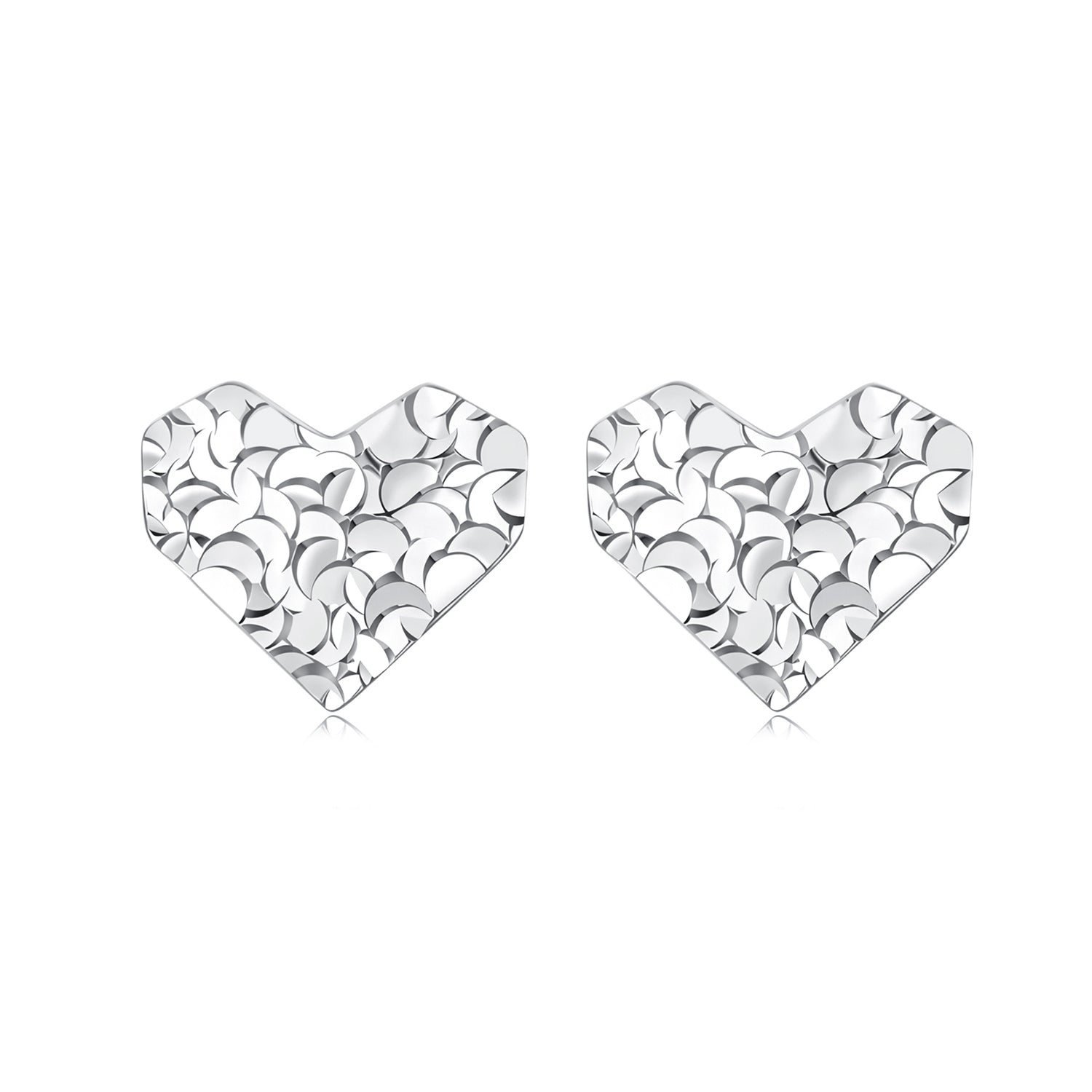 Textured Silver Heart Stud Earrings