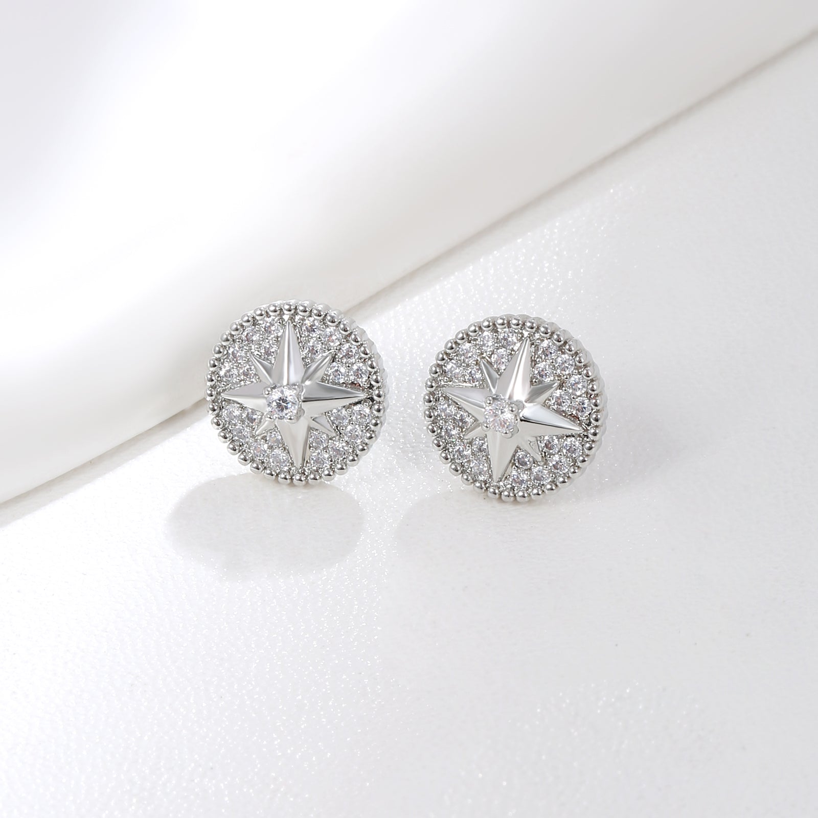 Bold round studs with intricate radial detailing, giving off a vintage, radiant energy.