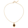 Gold necklace with a round tiger eye pendant and adjustable length. Waterproof and hypoallergenic.