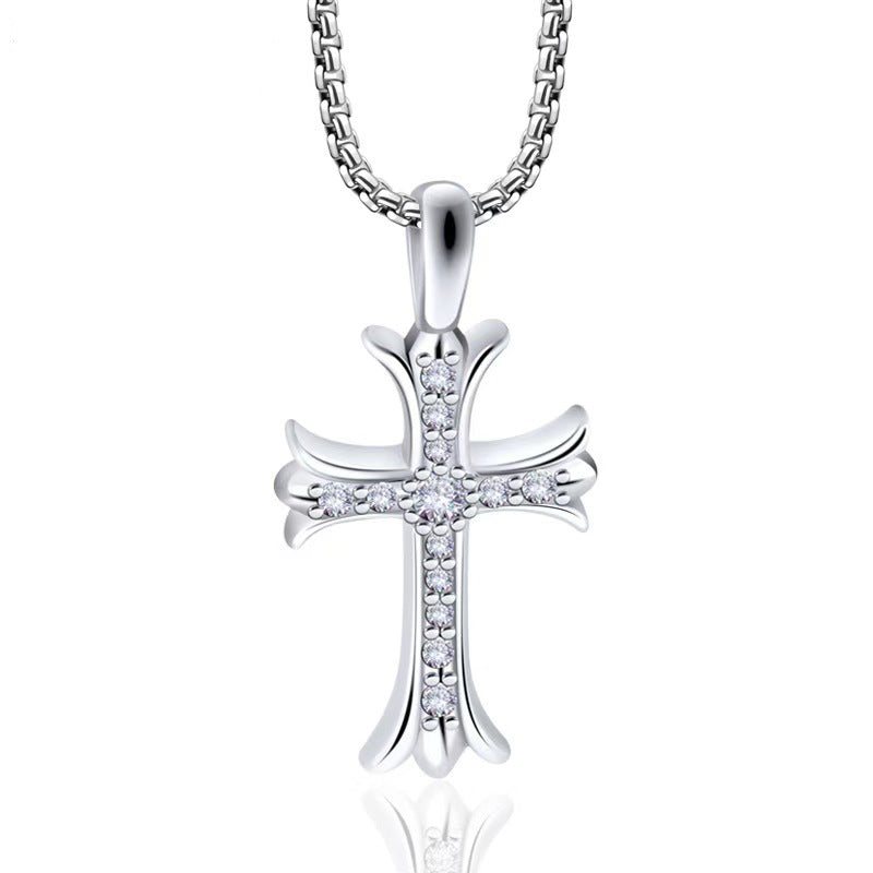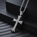 A detailed silver cross pendant on a matching chain. Strong, edgy and versatile for casual or street-style looks.