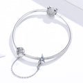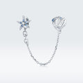 A sterling silver safety chain with a shimmering starfish and shell, accented by blue cubic zirconia for a seaside touch.