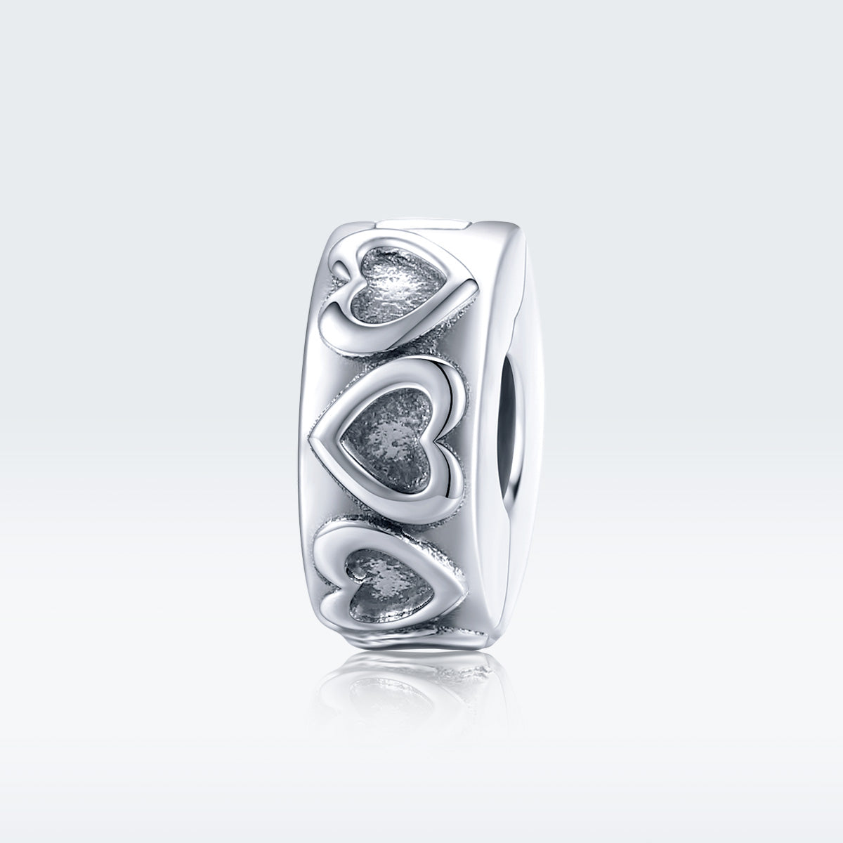 A sterling silver clip charm with three openwork heart outlines, each set with a sparkling cubic zirconia.