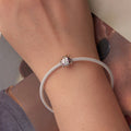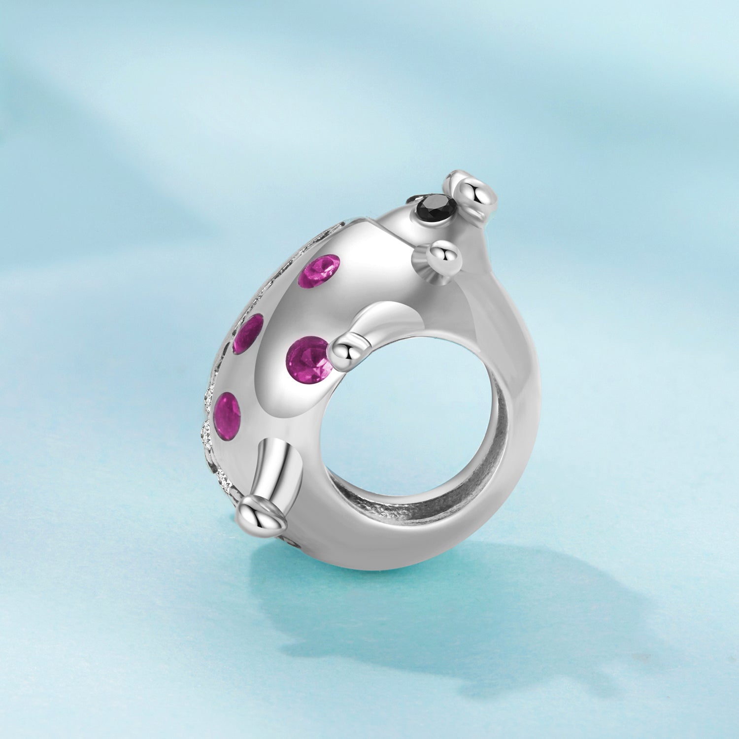 Sterling silver ladybug with sparkling pink and clear crystals for a playful, nature-inspired accent.