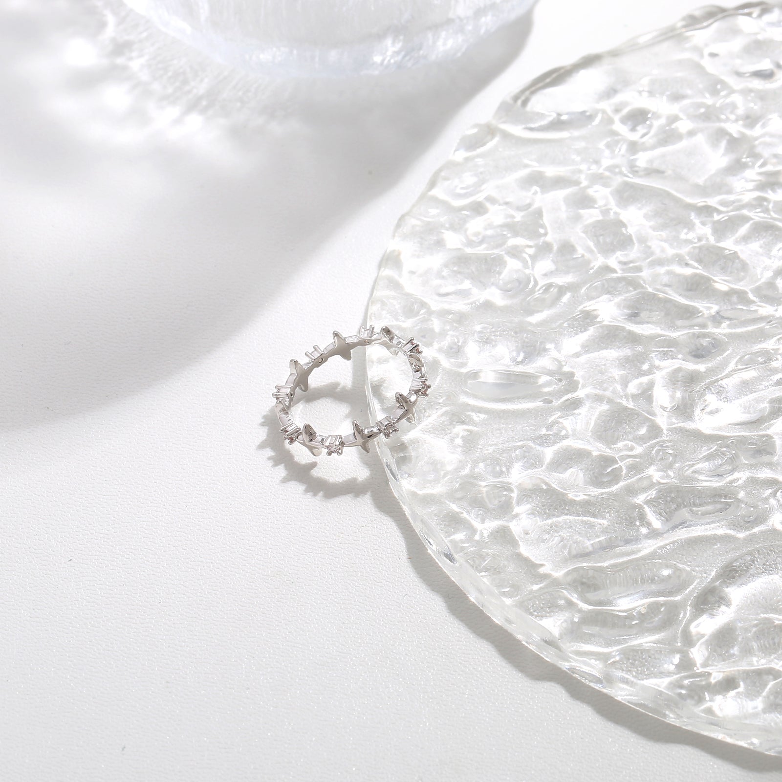 An ornate lace-patterned silver ring, as delicate and graceful as frost on glass.
